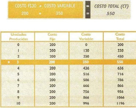Podemos observar de este cuadro que en la medida en que la producción crece, aumenta el costo total, primero en forma acentuada y luego en forma más pausada. Esto se produce en consecuencia de realizar una mejor distribución del costo fijo entre el total de la producción. Al pasar a un nivel de producción, que insume mayores gastos, el costo total vuelve a crecer rápidamente.